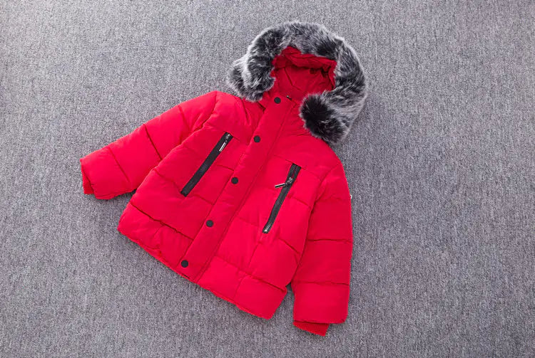 Manteau d'hiver pour enfants avec col en fourrure – Veste chaude rembourrée en coton pour garçons et filles | Nouveau
