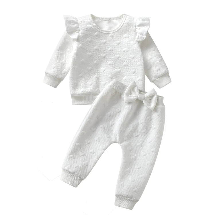 Ensemble bébé fille imprimé cœur - Pull à volants et pantalon à nœud papillon 3-24 mois | Neuf