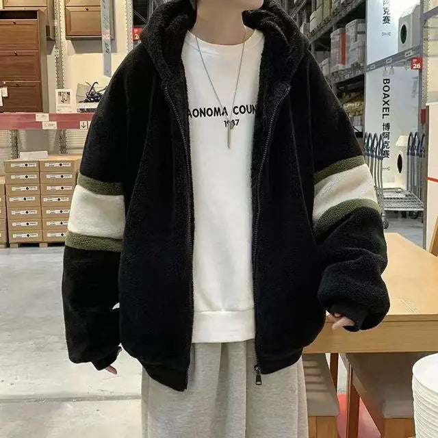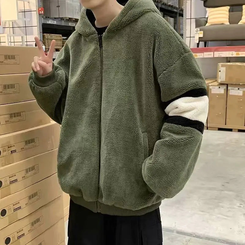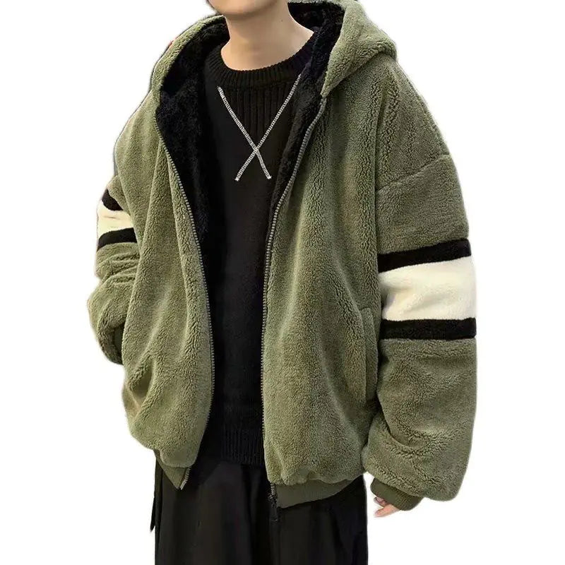 Men's Thick Lamb Wool Zipper Pullover Coat 2021 Harajuku Inspired Winter Outerwear
